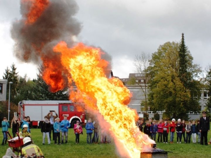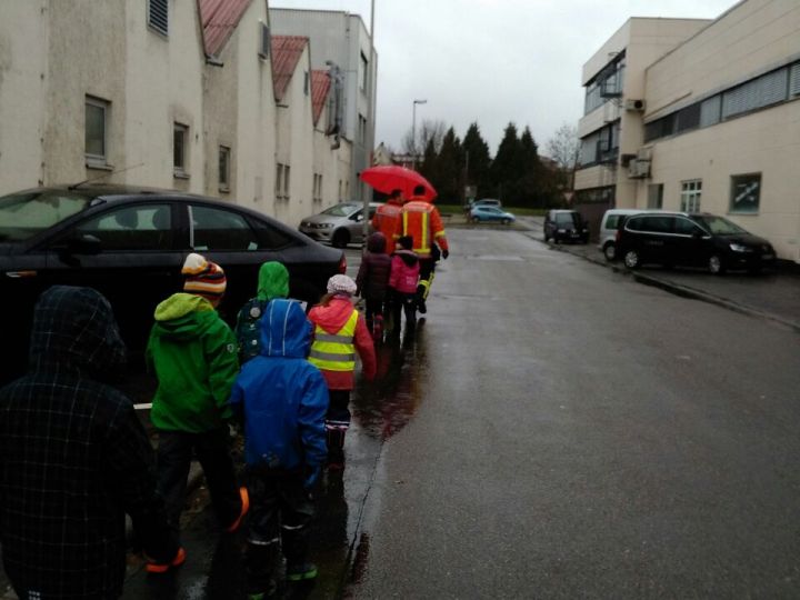 Die Kindergruppe der Jugendfeuerwehr Steinheim machte sich mit großen Schritten auf, in Richtung Fahrzeughalle.
