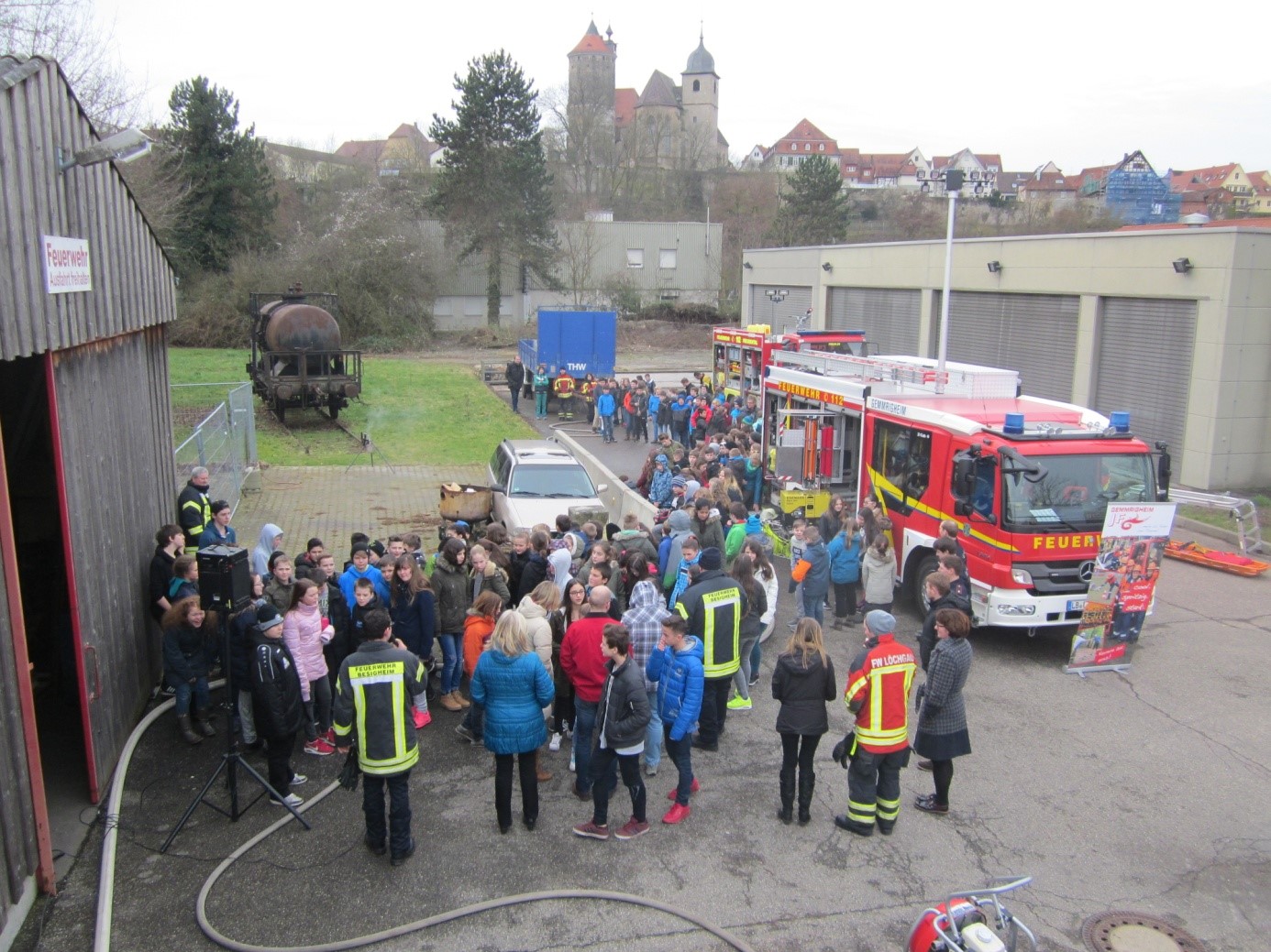 Sieben Feuerwehren stellten sich an zwei Vormittagen rund 550 Schülern vor. In den Genuss dieser interessanten Vorstellung kamen die fünften und sechsten Klassen der vier weiterführenden Schulen in Besigheim. Dies sind das Christoph-Schrempf Gymnasium, die Maximilian-Lutz Realschule, die Friedrich-Schelling-Schule / Gemeinschaftsschule Besigheim, sowie die Schule am Steinhaus. Die sieben Feuerwehren Besigheim, Gemmrigheim, Walheim, Löchgau, Freudental, Mundelsheim und Hessigheim, boten den Kindern ein spannendes Programm. Dabei wurde über die Aufgaben der Feuerwehren informiert und die Tätigkeitsfelder einer Feuerwehr, wozu z. B. die Technische Hilfeleistung und der Löschangriff zählen, vorgestellt. Nach der Vorführung der Einsatzkleidung durften sich die Schüler selbst als Feuerwehrmann/-frau ausrüsten.