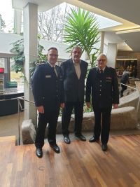 Gratulanten auf dem Bild sind Jürgen Geiger und Oliver Semmler, ehemaliger und aktueller Kreisjugendfeuerwehrwart.