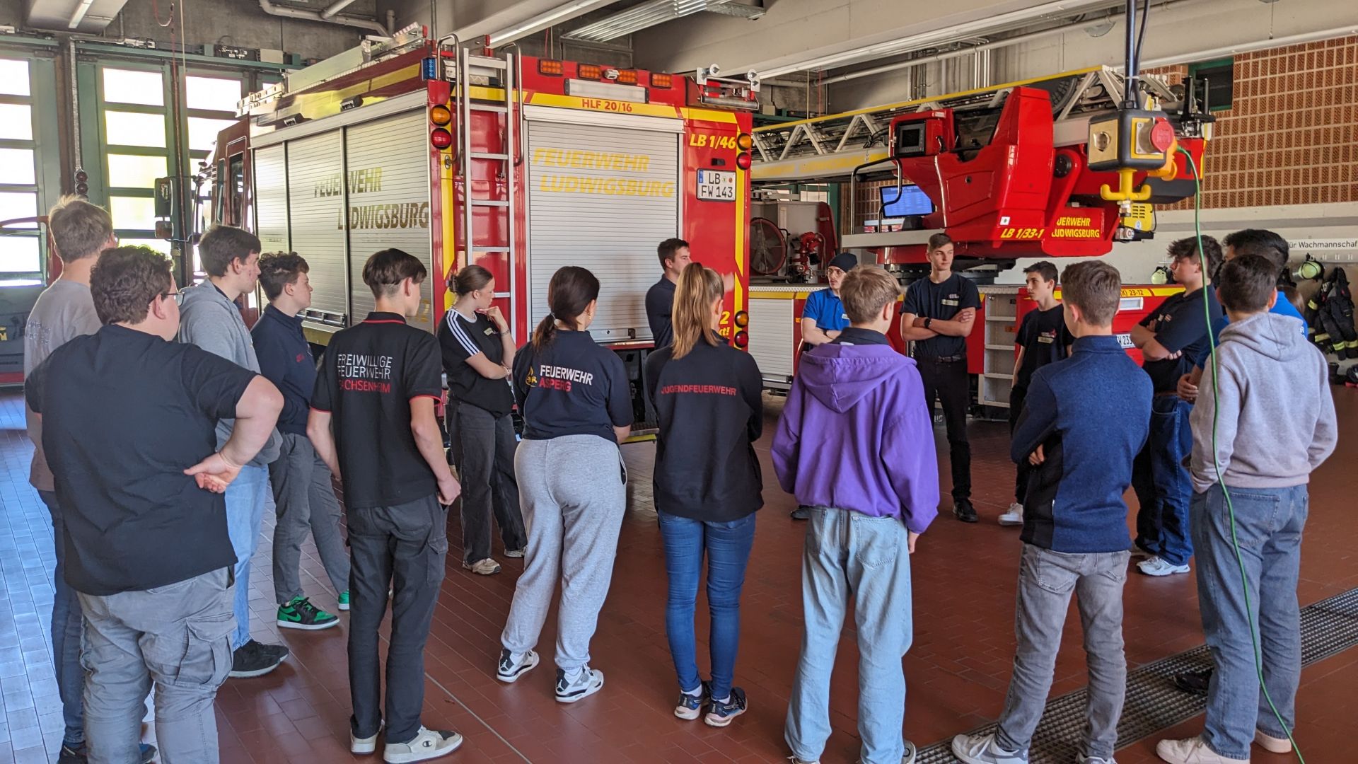 Gestärkt nach dem Mittagessen bekamen die Jugendlichen eine Wachführung durch die Hauptwache der Feuerwehr Ludwigsburg und einen Einblick in die vielen Feuerwehr-Sonderfahrzeuge des Landkreises.